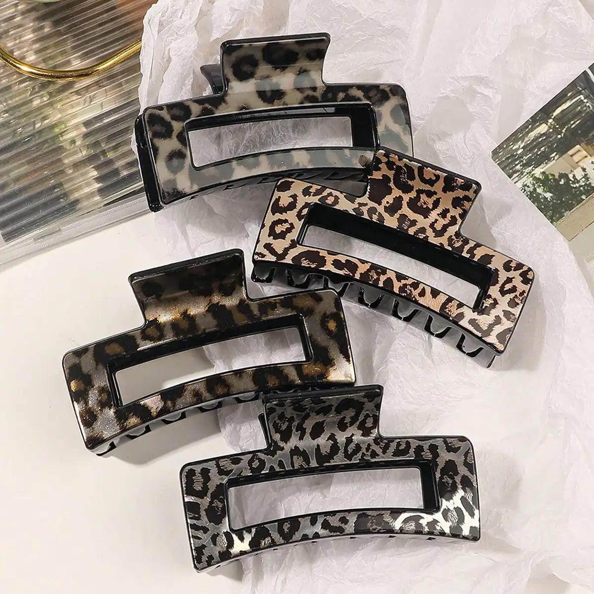 Leopard-print Large Arc Cross Square Geometric Acrylic Hair Grab Clips (6 Styles)