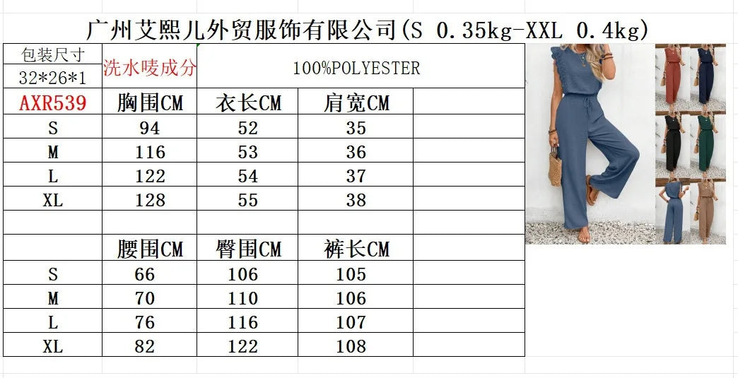 2026 Summer Women's Sleeveless O-Neck Top & Elastic Waist Straight Pants 2-Piece Set