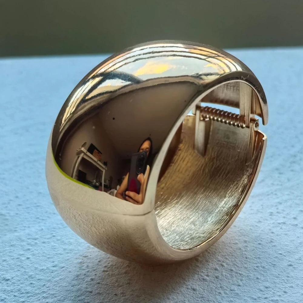 Crafted with a wide, structured design, this statement piece delivers maximum impact while maintaining a sleek, polished gold tone. Whether you're styling it with a minimalist outfit or layering it with other accessories, this bangle demands attention.