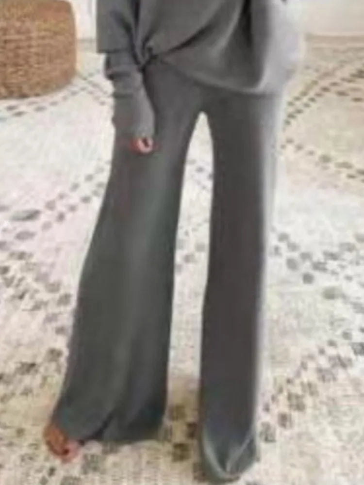 Crafted from soft, breathable knit fabric, the set offers a cozy feel while maintaining a flattering silhouette. The asymmetrical neckline adds a subtle statement touch, while the straight-cut pants elongate the legs for a polished, put-together look. Whether you're heading out for brunch, casual office days, travel, or relaxed evenings out, this versatile set makes styling effortless.
