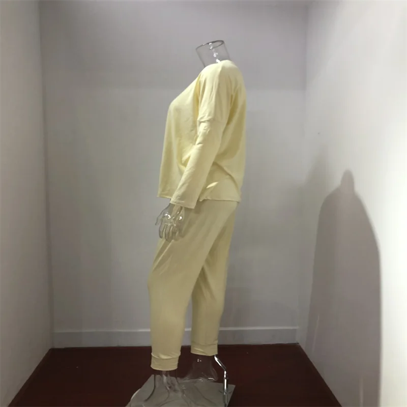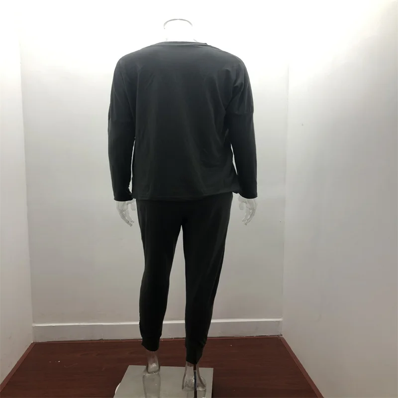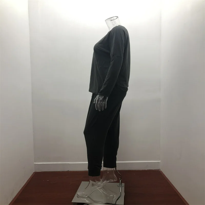 Hot Women's Long Sleeve Round Neck Top and Pants Set