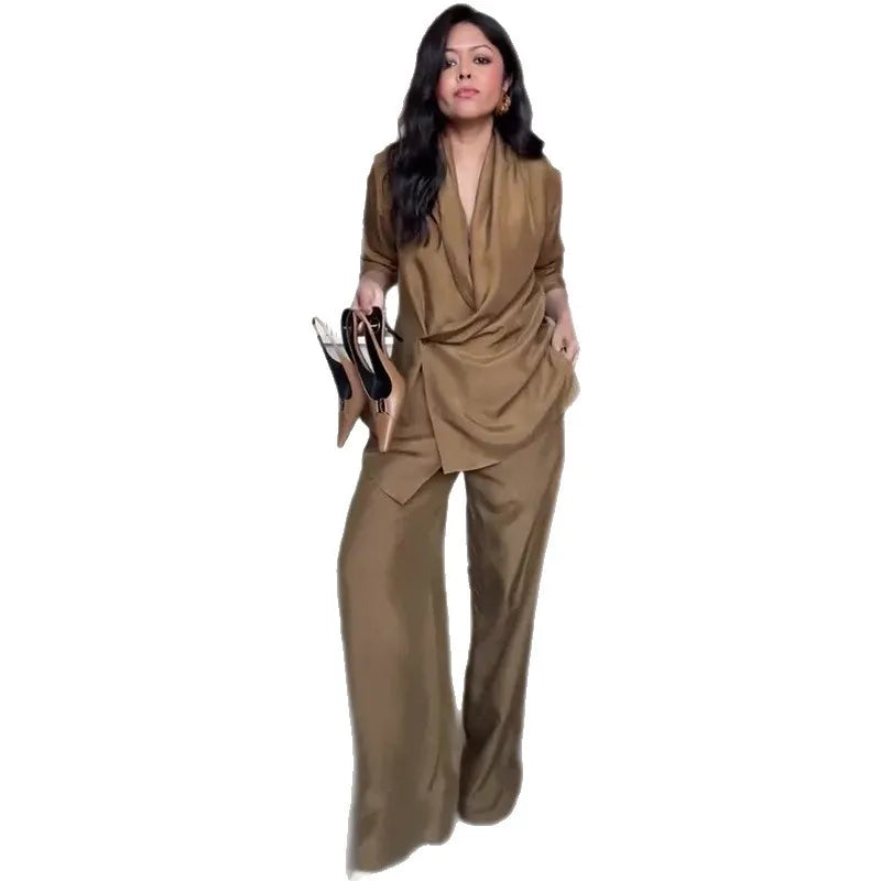 Chic 2-piece matching set (blouse + wide-leg trousers)